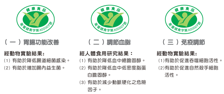 賜多利奶粉經衛福部查驗產品的安全性、功效性及生產工廠衛生條件後,確認產品具有『特定之保健功效』,獲頒三項國家『健康食品許可證』。